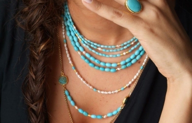 У ожерелий также есть разные стили и названия. Например, чокер - это короткое ожерелье, облегающее шею, оно актуально и элегантно. Маточное ожерелье - это длинное ожерелье, которое можно носить в нескольких слоях, оно придает образу изысканность и роскошь.