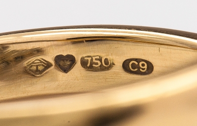 Марка производителя. Это уникальный символ или логотип, который присваивается мастерским и ювелирным компаниям. Он может включать буквы, символы или комбинацию цифр и букв, и именно он позволяет определить, кто изготовил украшение.