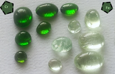 Драгоценная разновидность разновидность берилла – изумруд является хромсодержащей. Этим и объясняется ярко-зеленая окраска изумруда. Аналогично зеленая окраска хромдиопсида объясняется наличием в его составе хромофорной примеси хрома.