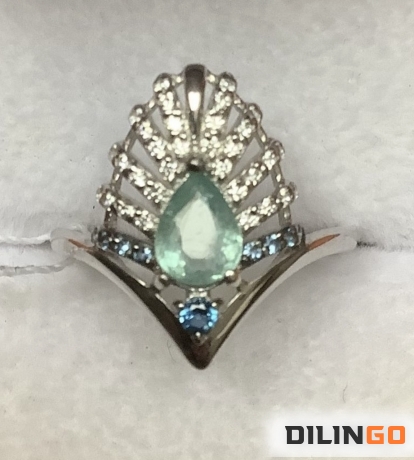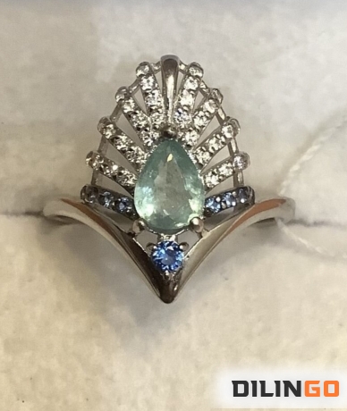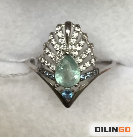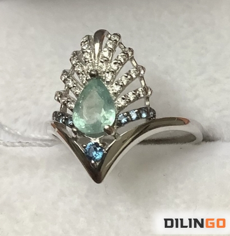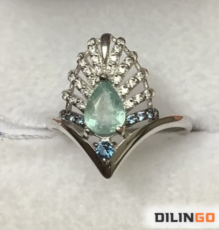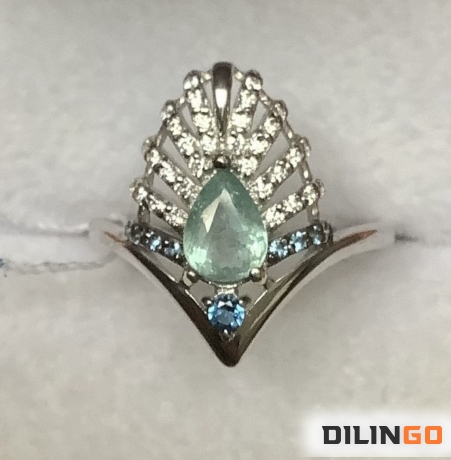 Кольцо с природным турмалином параиба