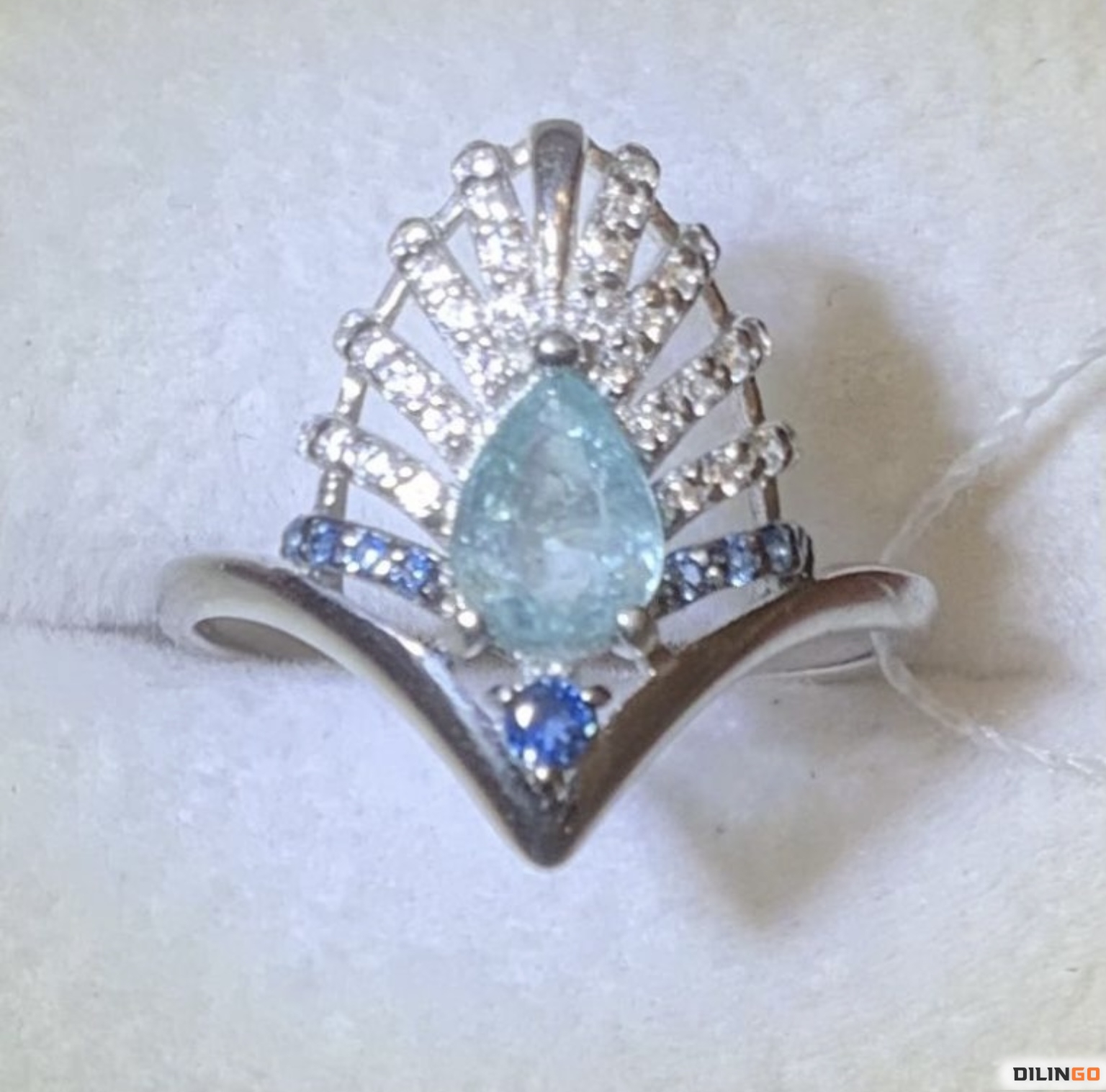 Кольцо с очень редким природным африканским турмалином параиба груша без обработки 0,65ct (6.3x4.8mm), VS-SI (присутствуют природные включения), родированное серебро 925, цирконы, размер 18, проверено у геммолога, новое. Почтовые и курьерские услуги. Рссрочка в индивидуальном порядке.