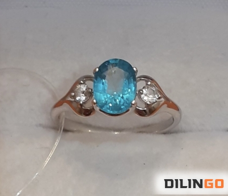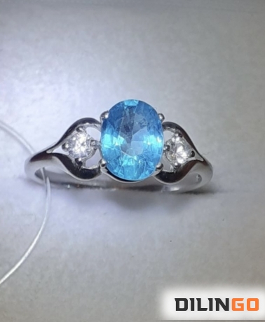 Кольцо с природным апатитом параиба
