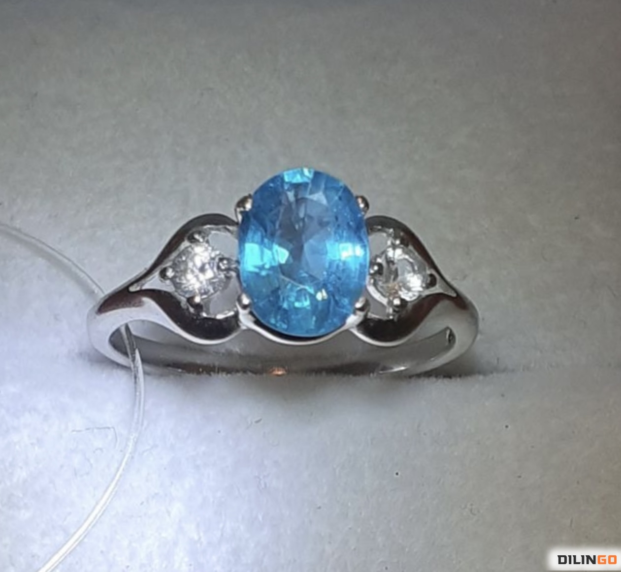 Кольцо трилогия с очень редким природным апатитом параиба 1.62ct (8x6mm), VVS, (Бразилия) и природными белыми сапфирами (2/3мм), VVS, (Цейлон), все камни без обработки, родированное серебро 925, размер 18, проверено у геммолога, новое. Сотовые и курьерские услуги. Рассрочка в индивидуальном порядке.