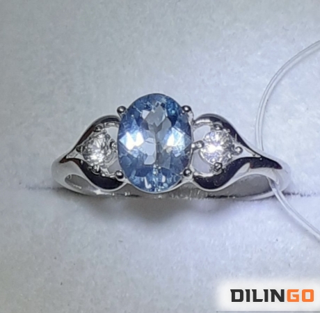 Кольцо с природным аквамарином и белыми сапфирами