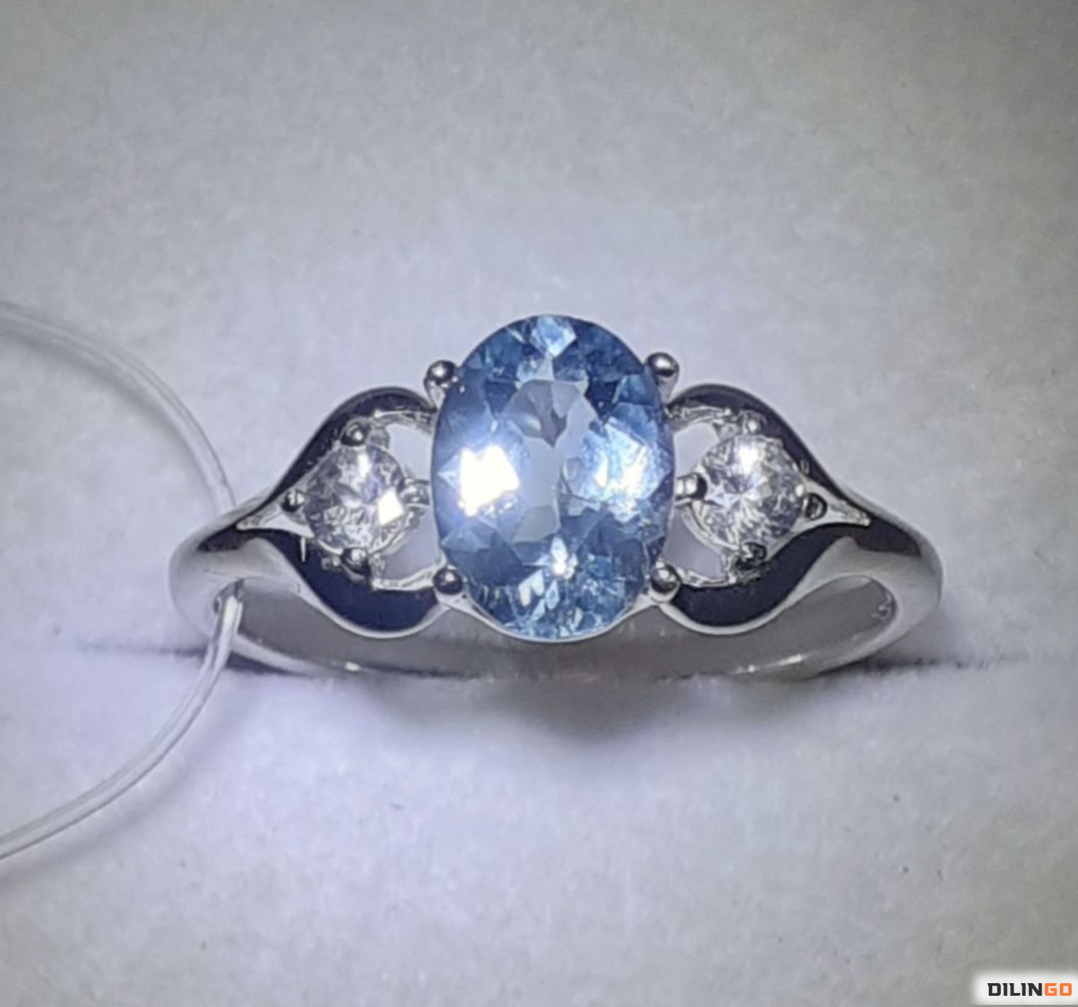 Кольцо с редким природным ярким африканским аквамарином medium blue без обработки (8.3×6.2mm), VVS, и природными цейлонскими белыми сапфирами без обработки (2.8mm), VVS, родированное серебро 925, размер 18.5, проверено у геммолога, новое. Почтовые и курьерские услуги. Рассрочка в индивидуальном порядке.
