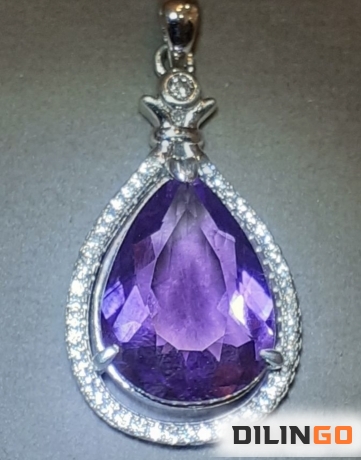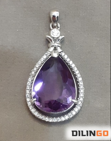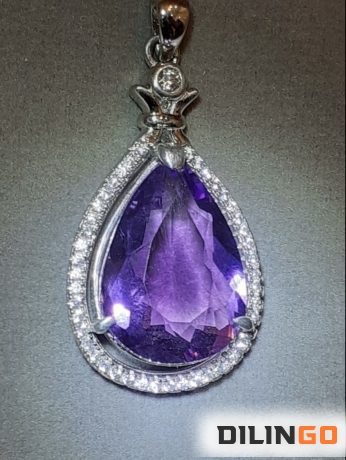 Кулон с природным аметистом и белыми микро топазами