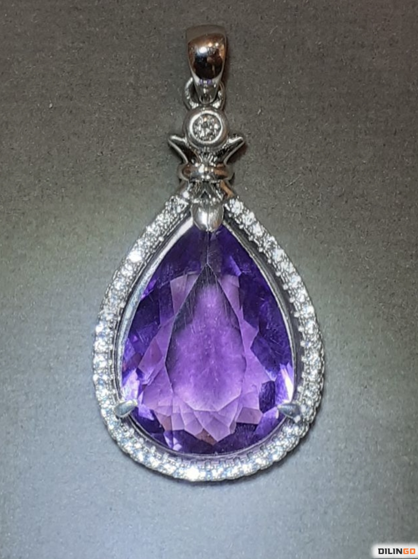 Редкий кулон с крупным аметистом груша без обработки 10.84ct (16.8×12.4mm) VVS, Африка, кулон с ушком 33×18mm, природные белые мкро топазы, родированное серебро 925, оправа США проверен у геммолога, новый почтовые и курьерские услуги. . Рассрочка в индивидуальном порядке.