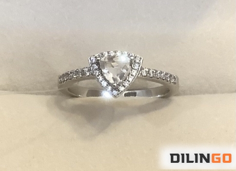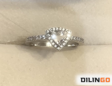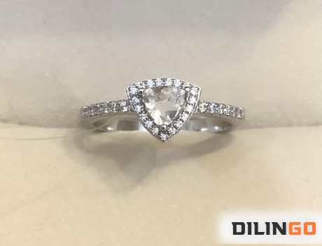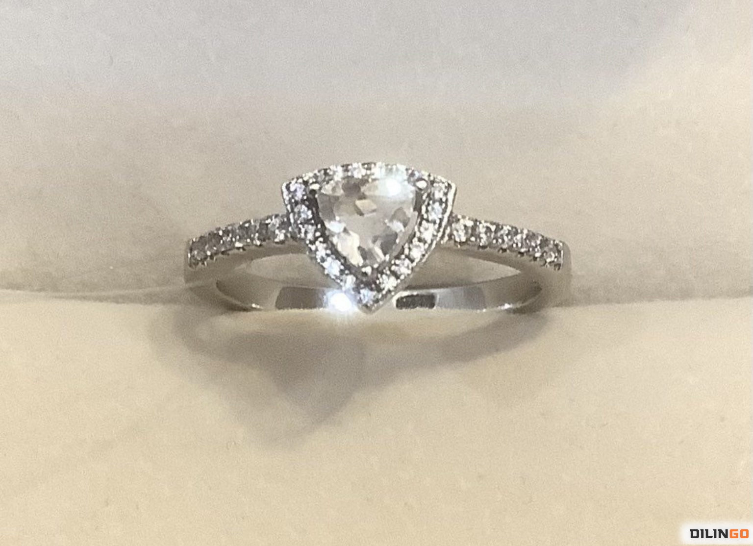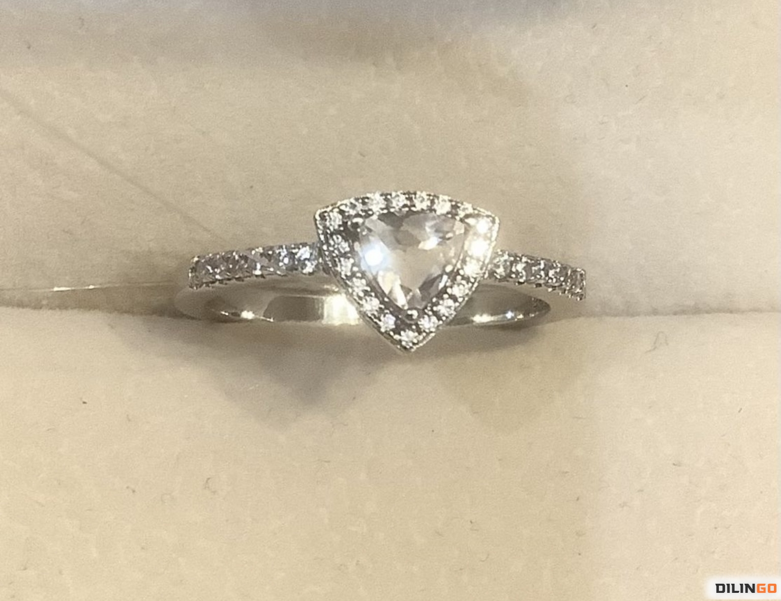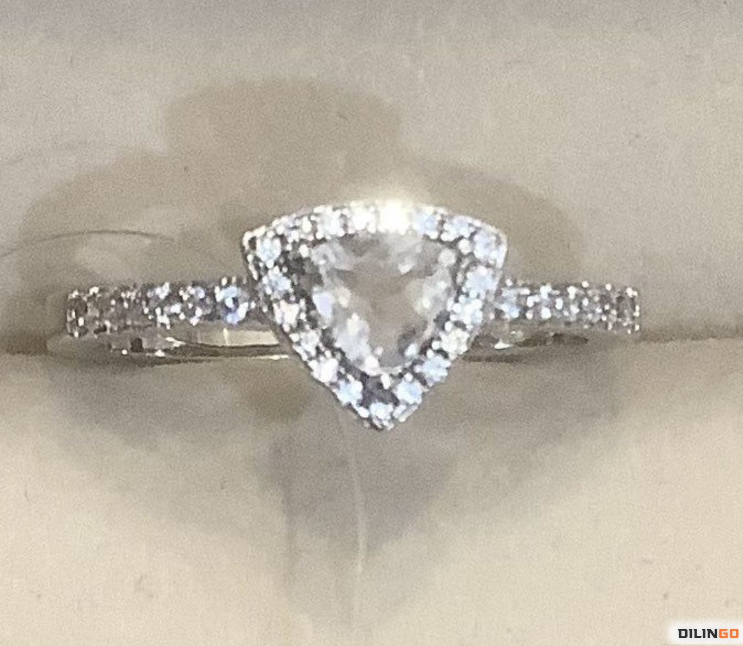 Кольцо с природным светлым морганитом триллионом без обработки 0,68ct (5.1x5mm) VVS, Бразилия, родированное серебро 925, микро цирконы, размер 19, проверено у геммолога, новое. Почтовые и курьерские услуги.