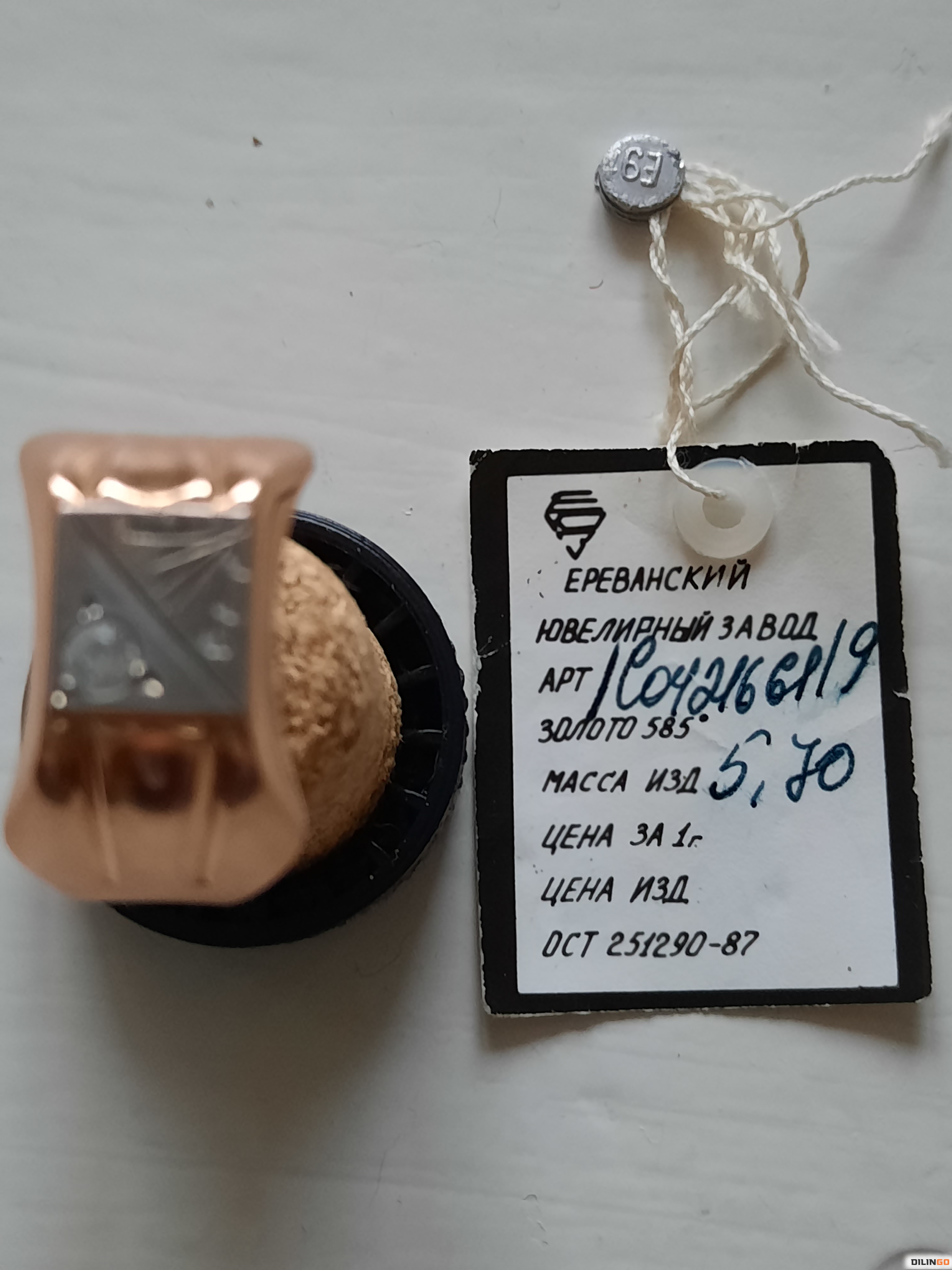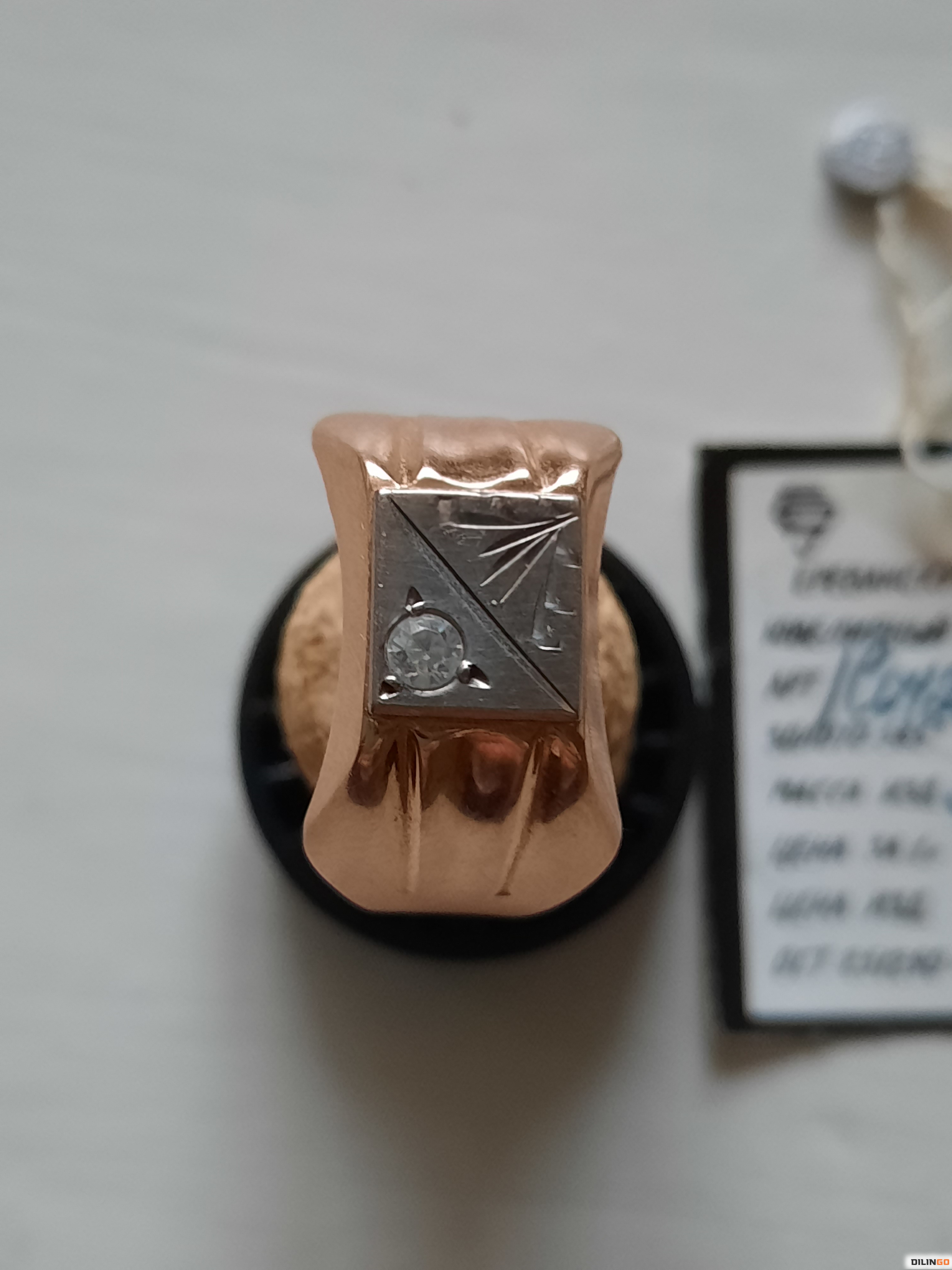 Перстень золото 585 пробы. 2 золота. Размер 20,5. Вес 5.7 г. Вставка-фианит. Ереванский ювелирный завод. Выпуск 1990г. Клейма на перстне имеются. Бирка с пломбой сохранена. Почти не носился.