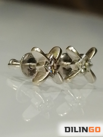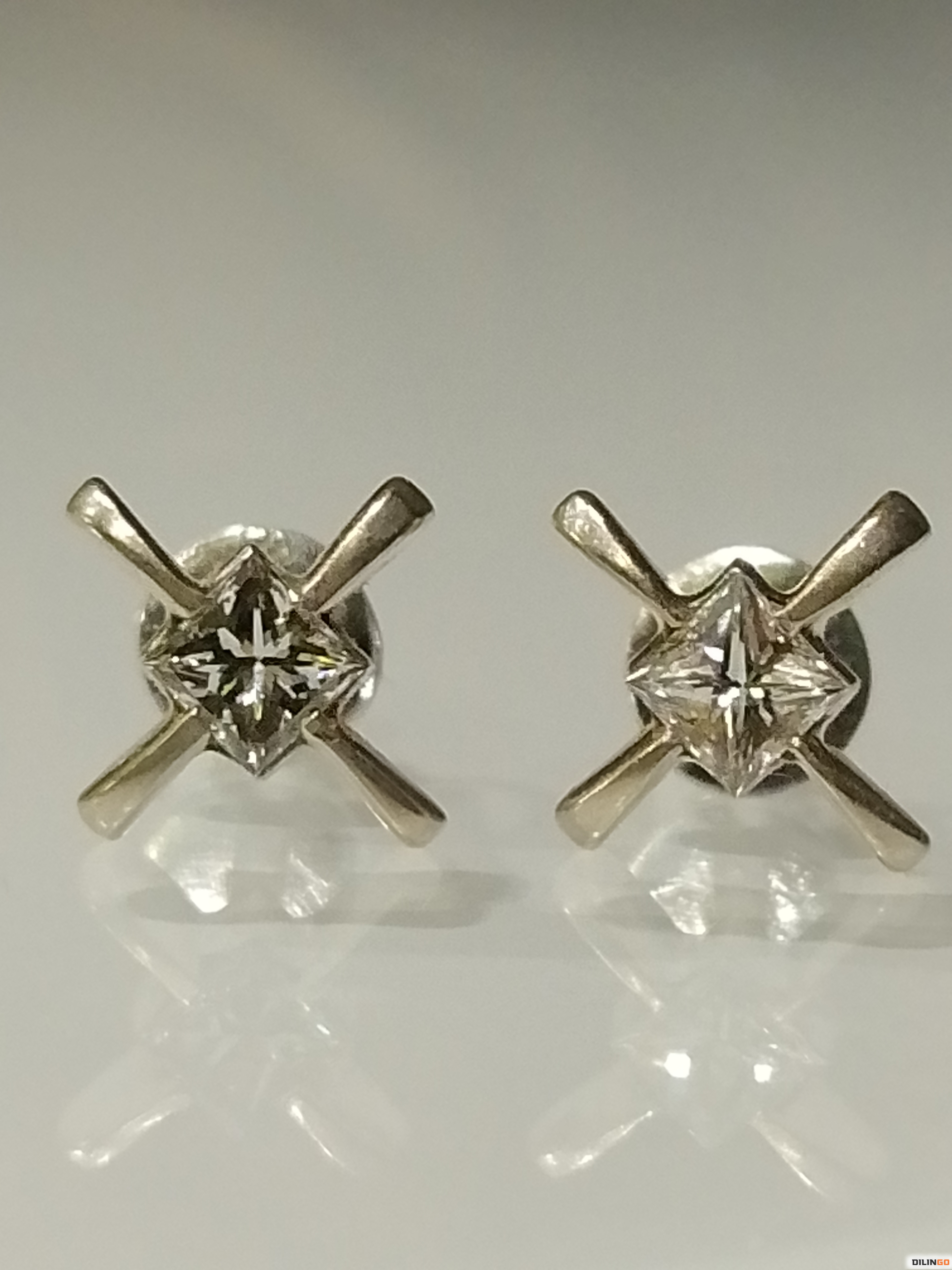 Серьги пусеты с природными бриллиантами высокой чистоты,заводское качество. Огранка принцесса 65 граней, 0,31 ct