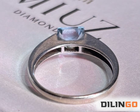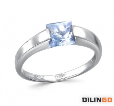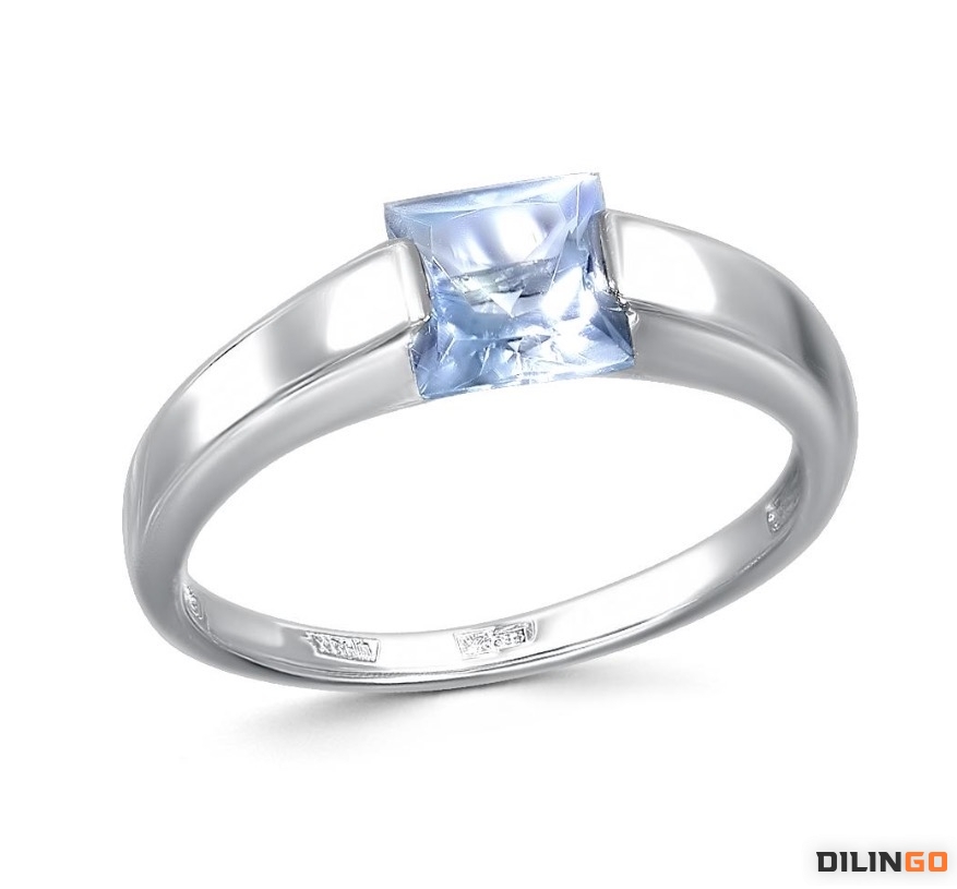 Кольцо из белого золота с натуральным голубым квадратным топазом Sky
