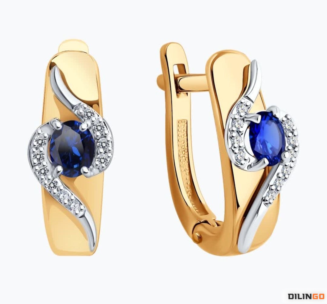 Новые золотые серьги с натуральным сапфиром от Sokolov.