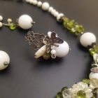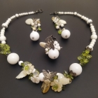 Бабочки - комплект из белого агата с цитринами и хризолитами
