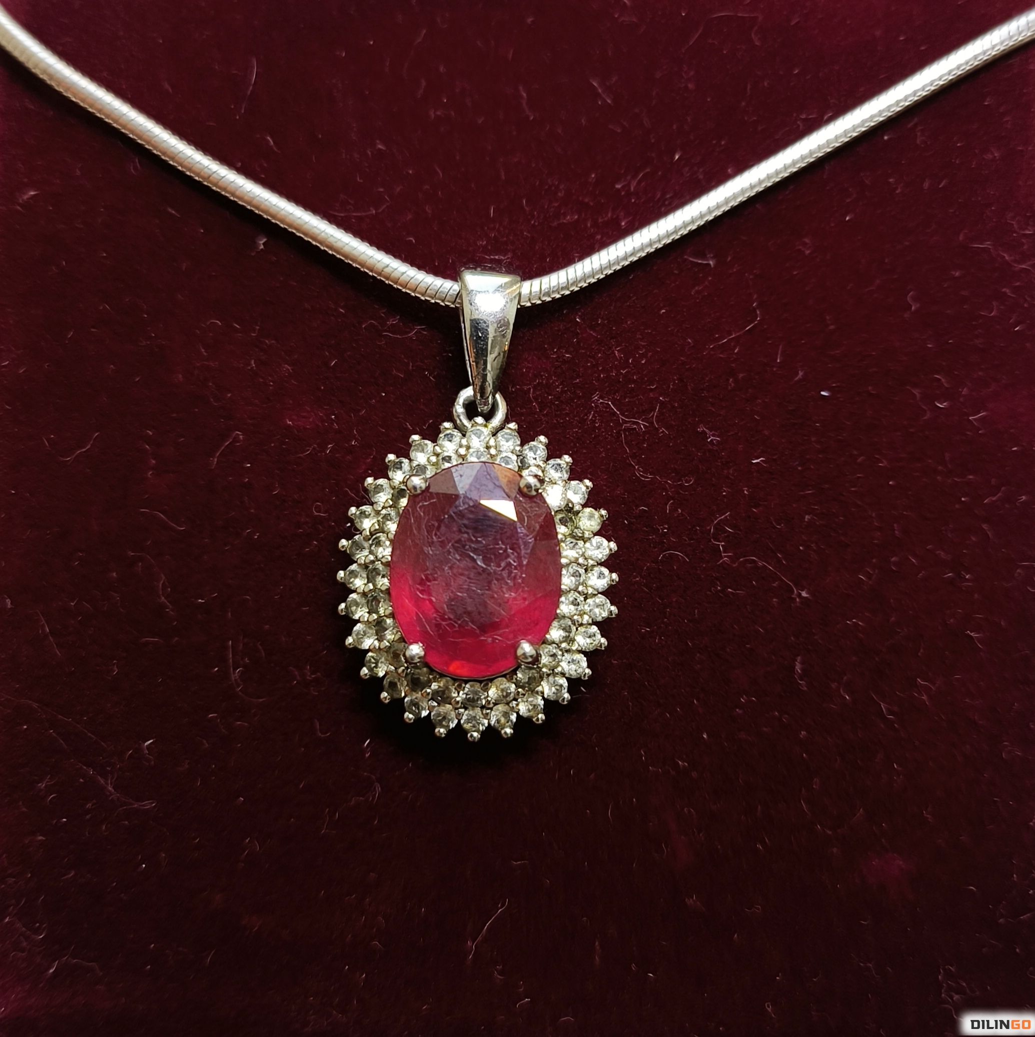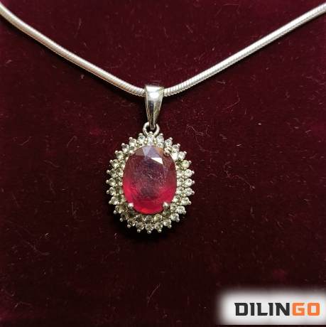 Подвеска из серебра (925 пробы) с камнем Рубин (3 карата) и фианитами. Страна происхождения рубина - Шри-Ланка. Ручная обработка.