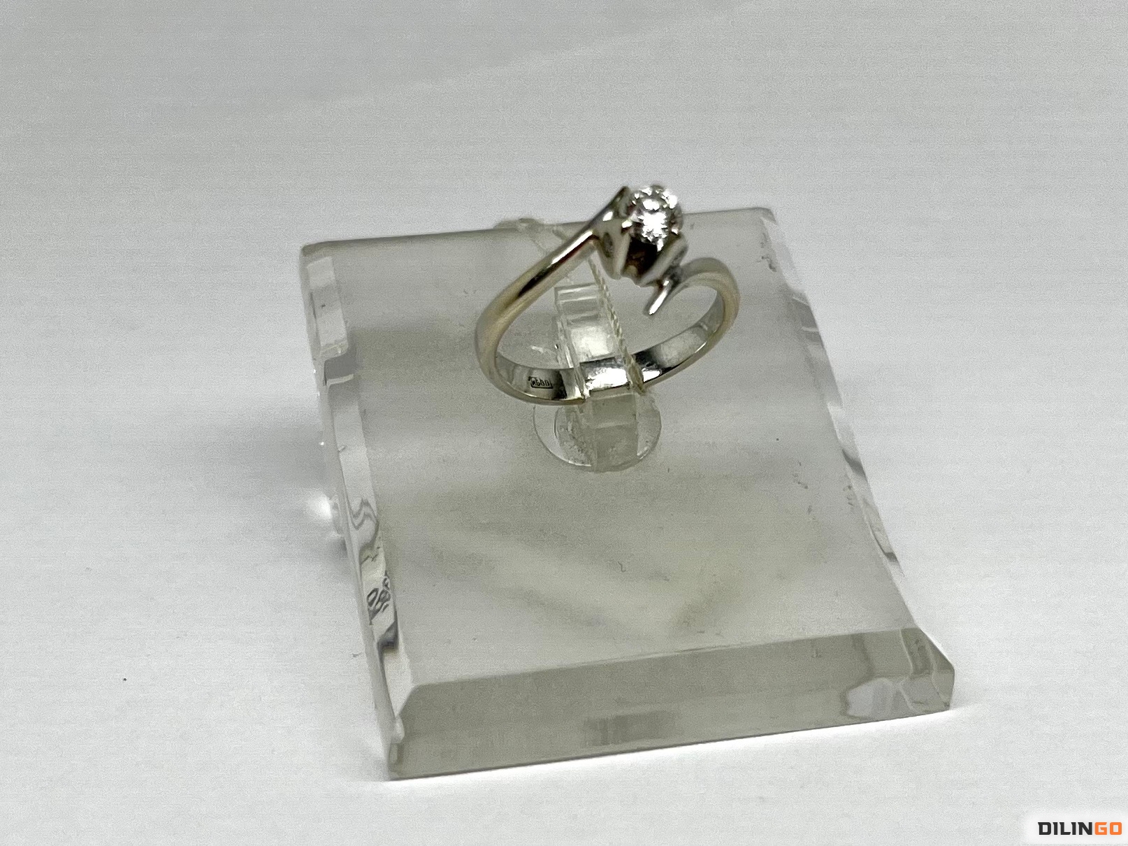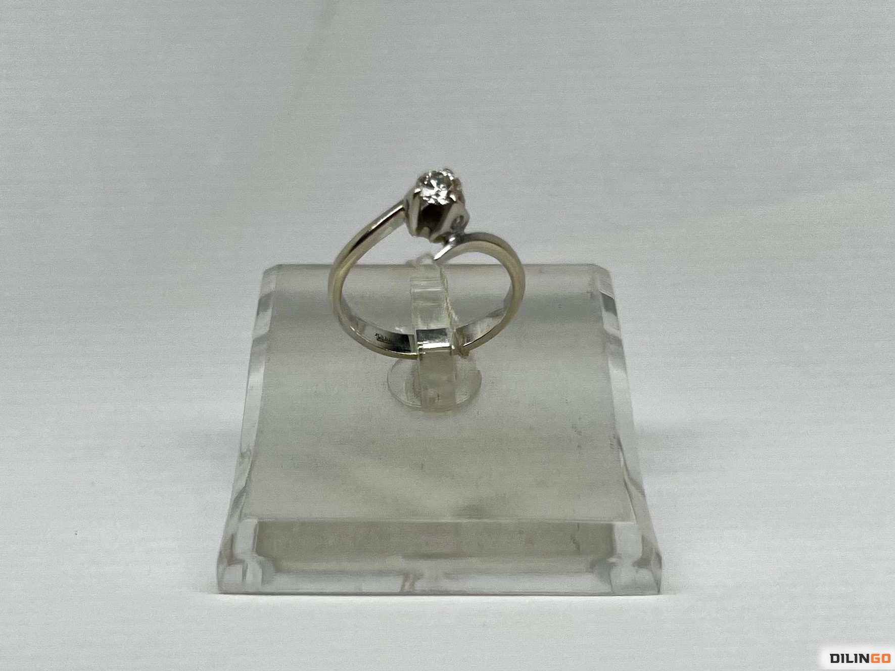 Кольцо с бриллиантом. Белое золото 585. Центральный бриллиант 0,25 ct (4мм), три маленьких по бокам. Вес 2,53 грамма. Размер 16