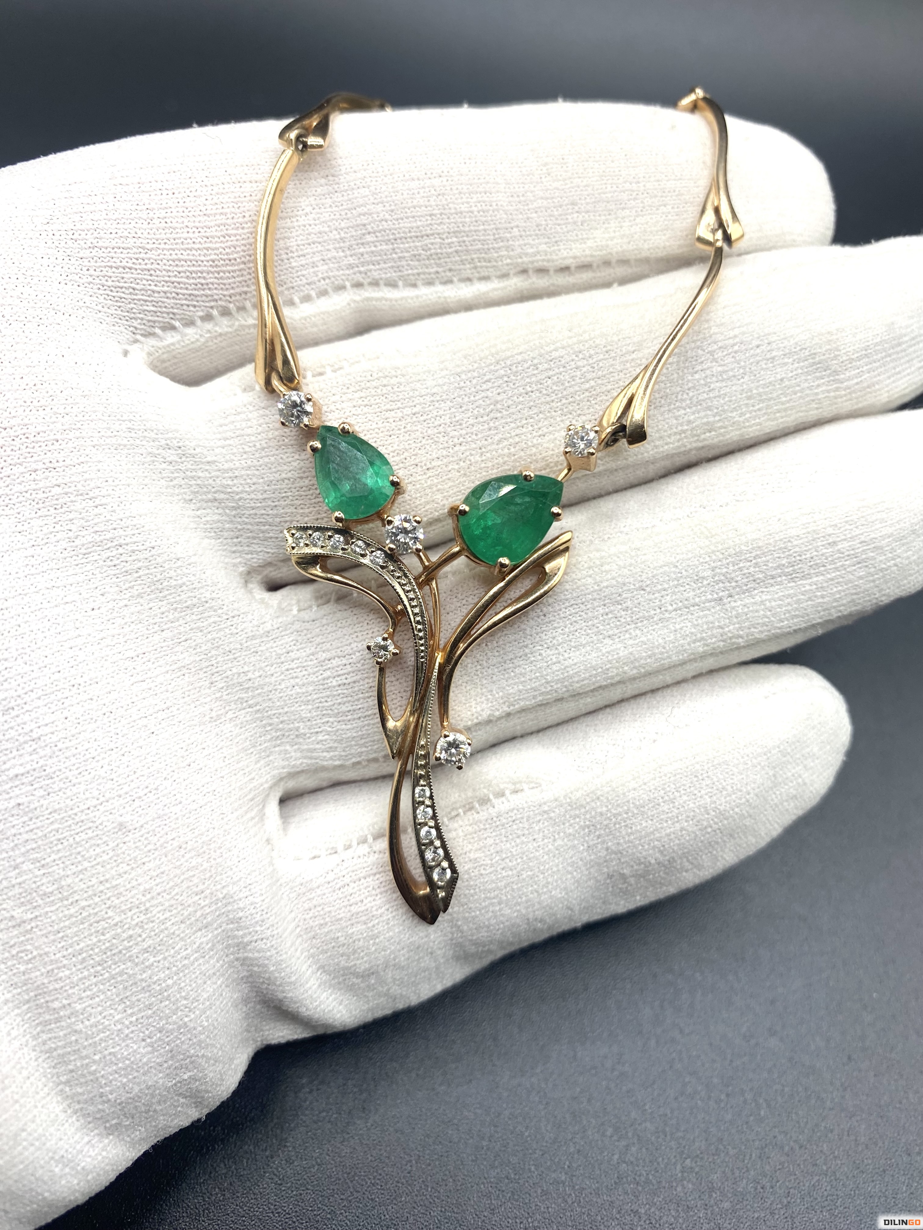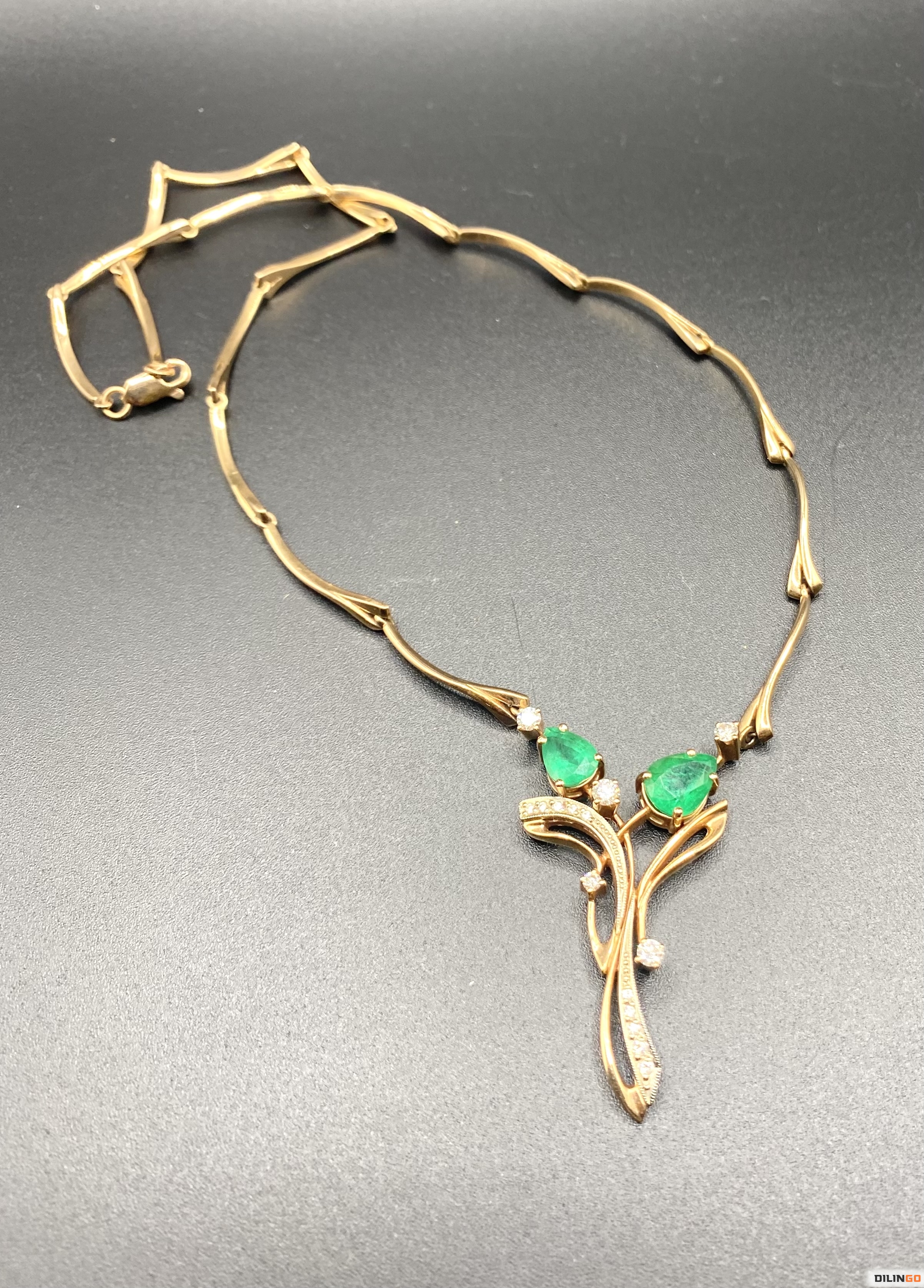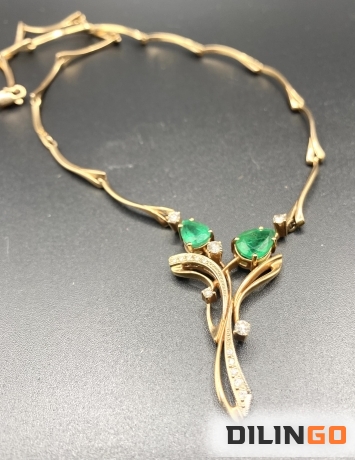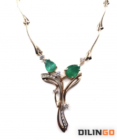 Золотое колье с изумрудами и бриллиантами