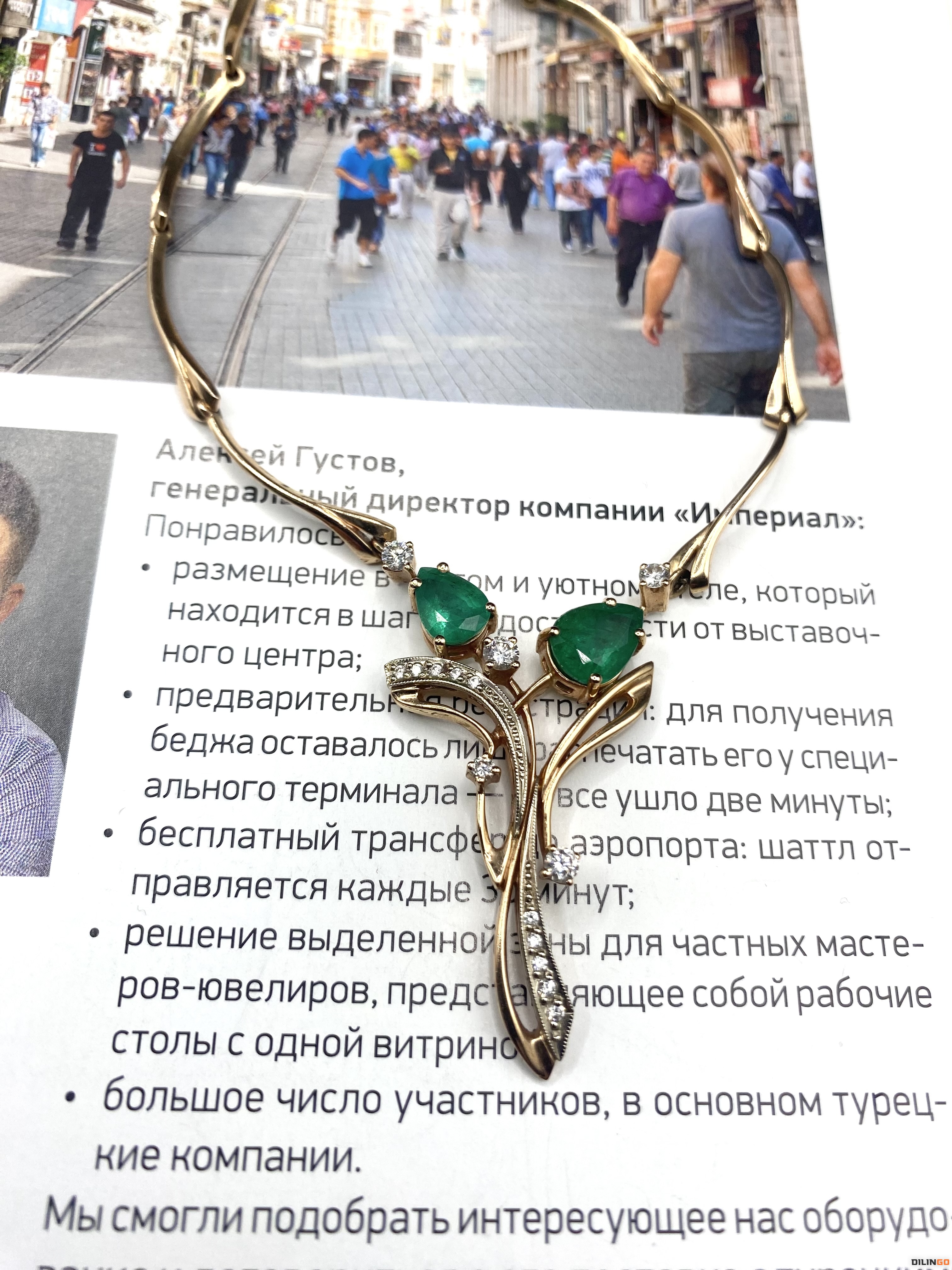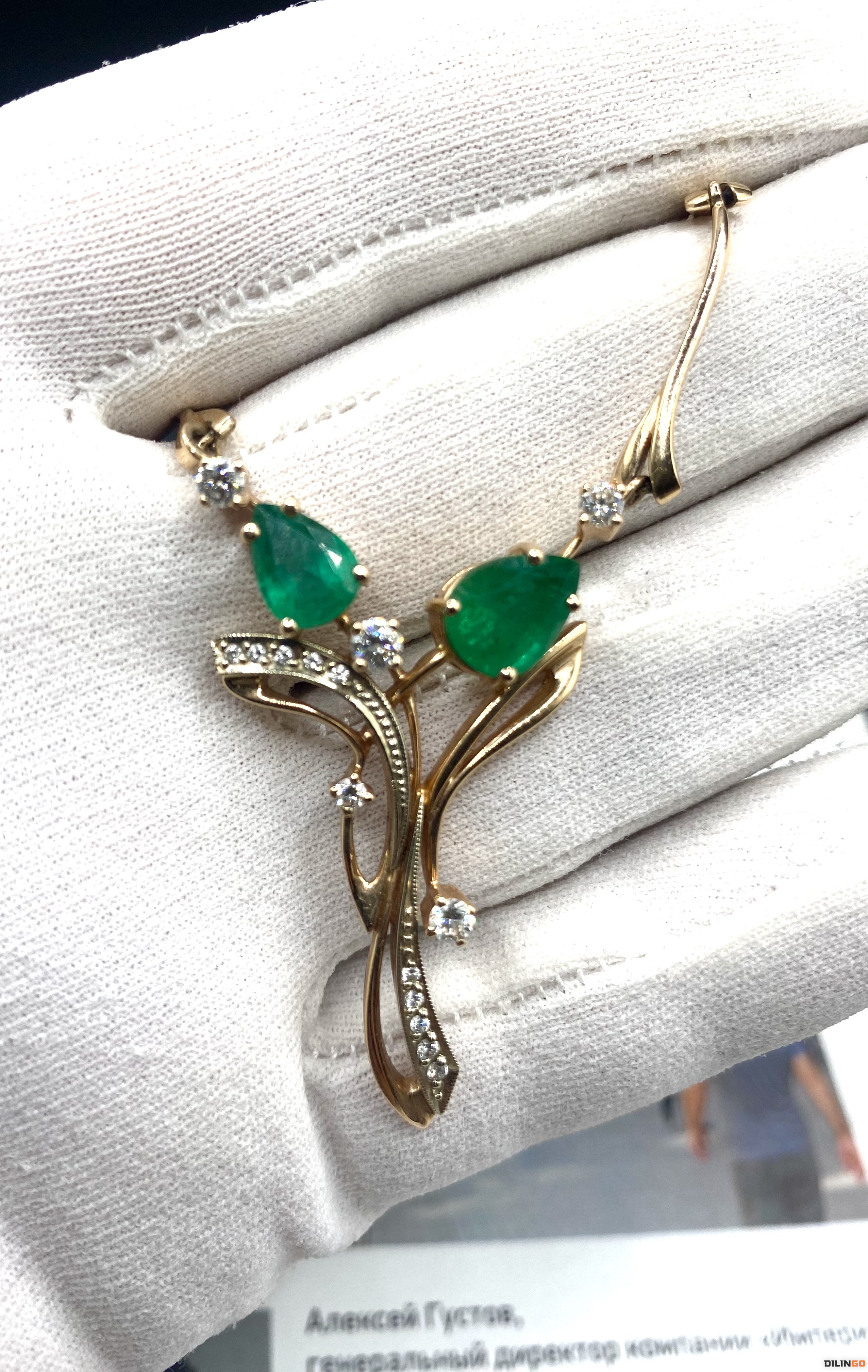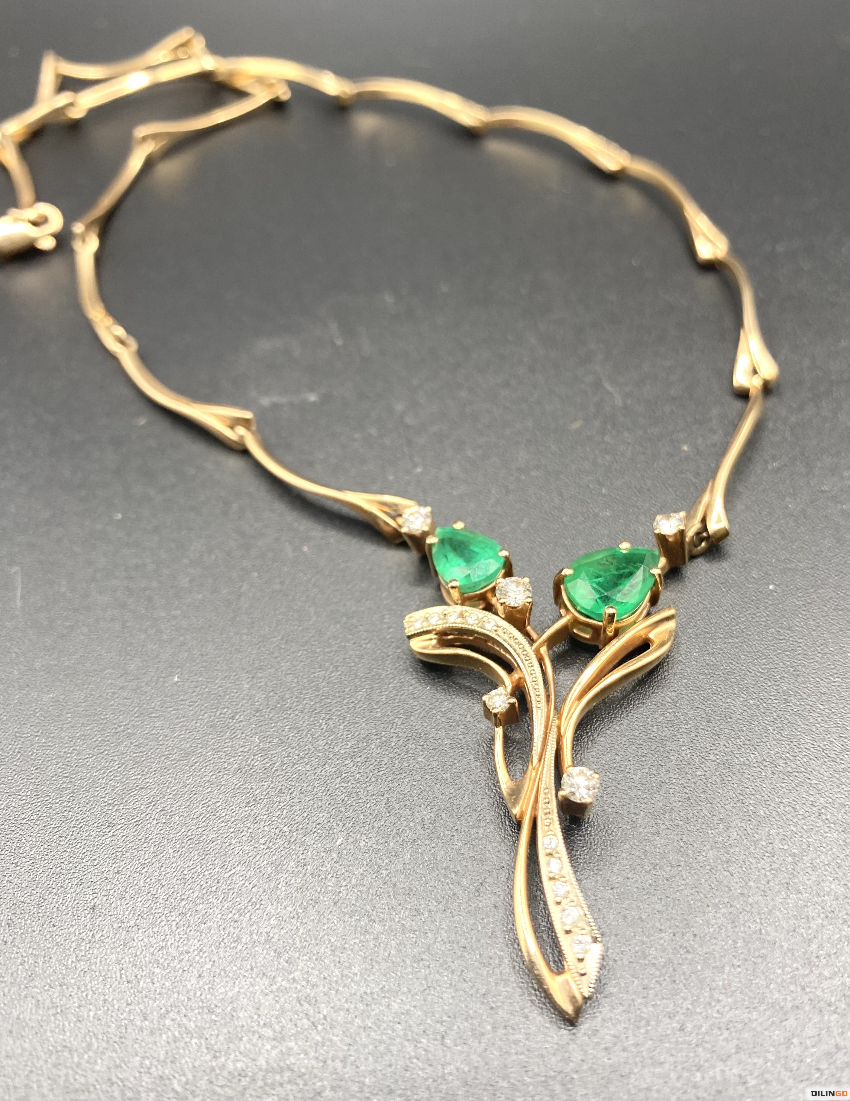 Золотое колье с изумрудами и бриллиантами