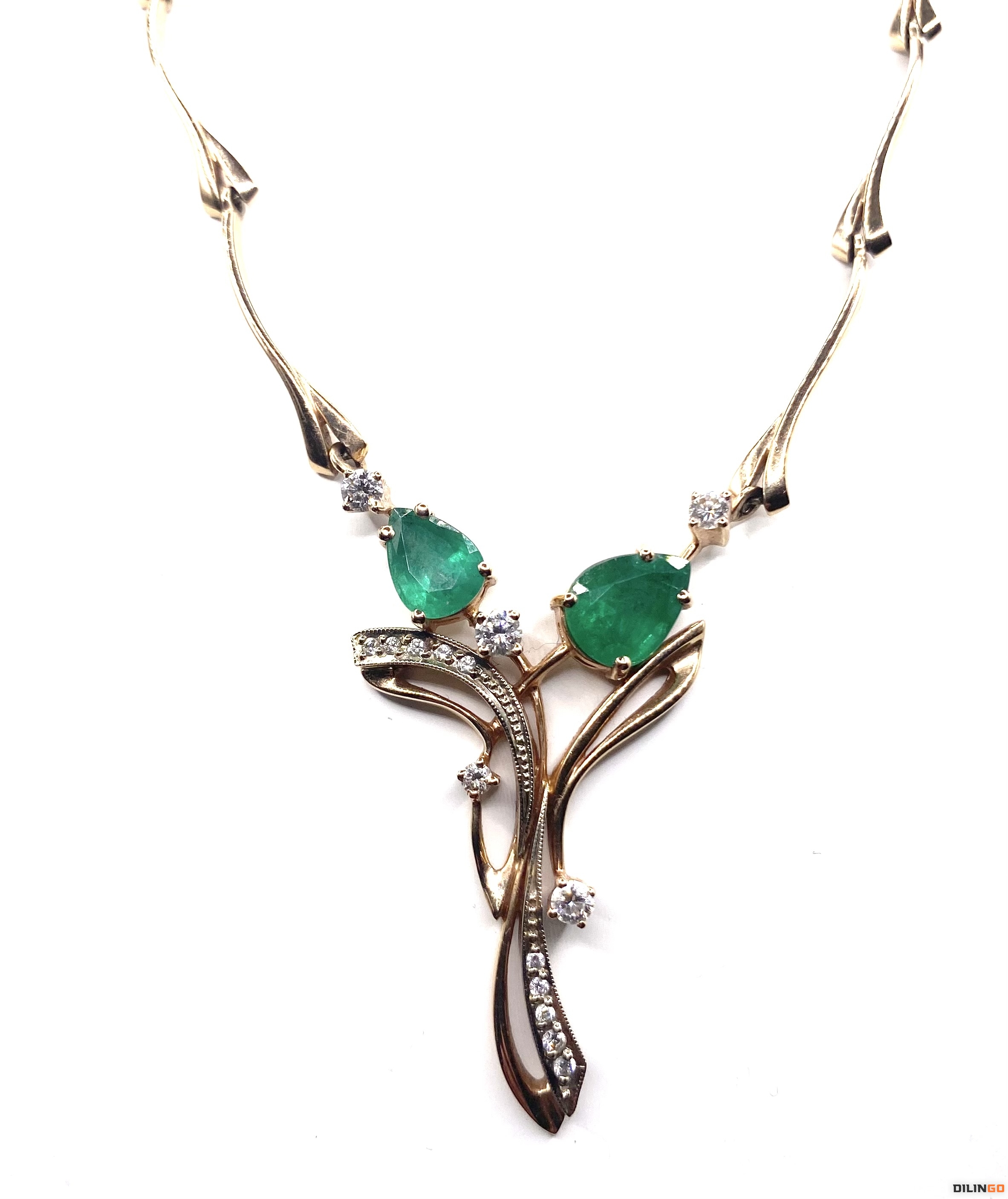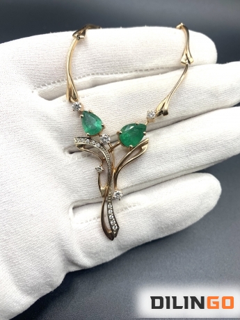 Колье 585’ с изумрудами и бриллиантами в идеальном состоянии