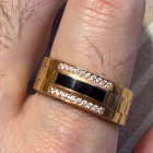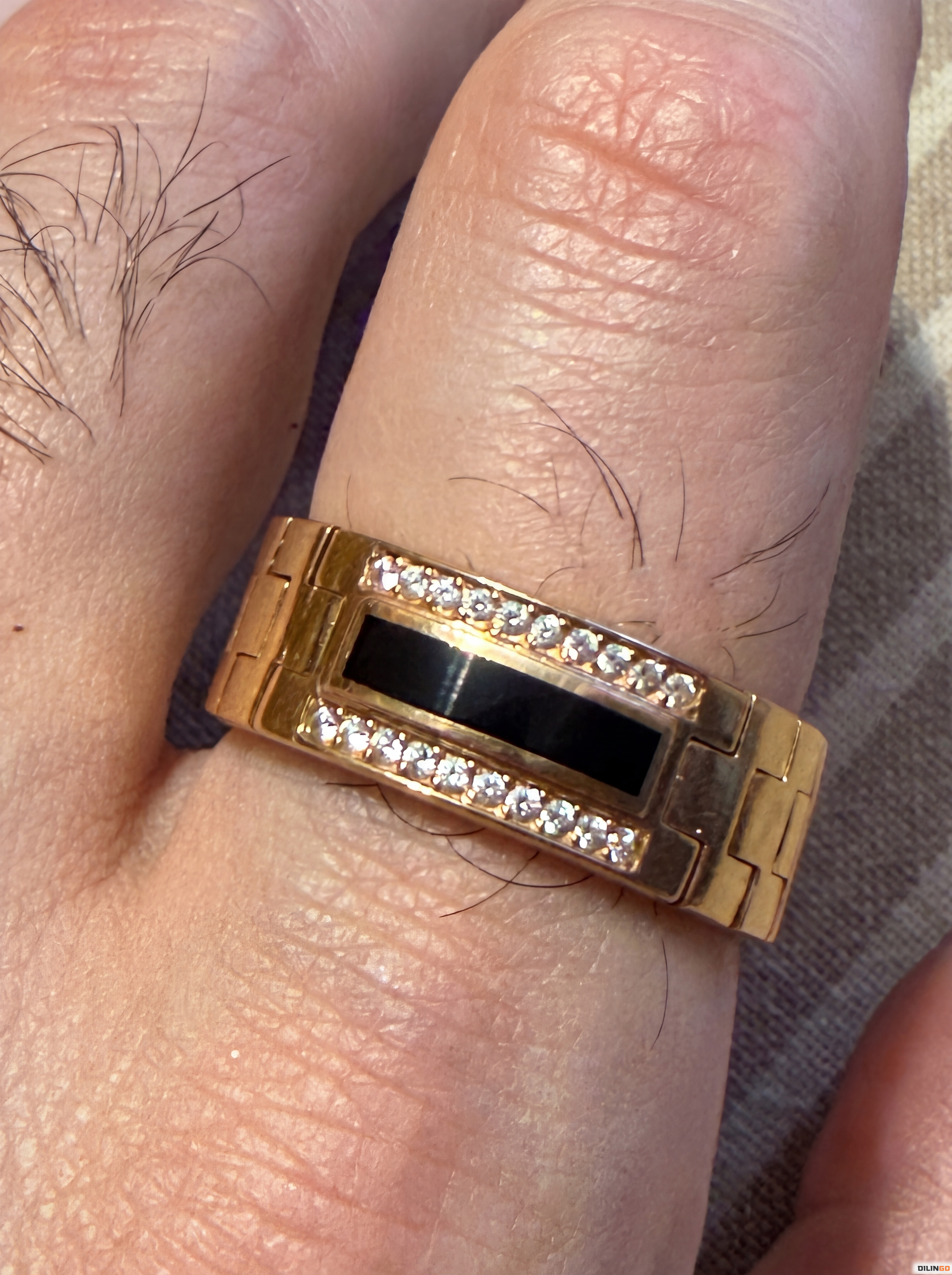 Геометрия и контраст: глубокий чёрный оникс в центре и аккуратная работа с бриллиантами по периметру.