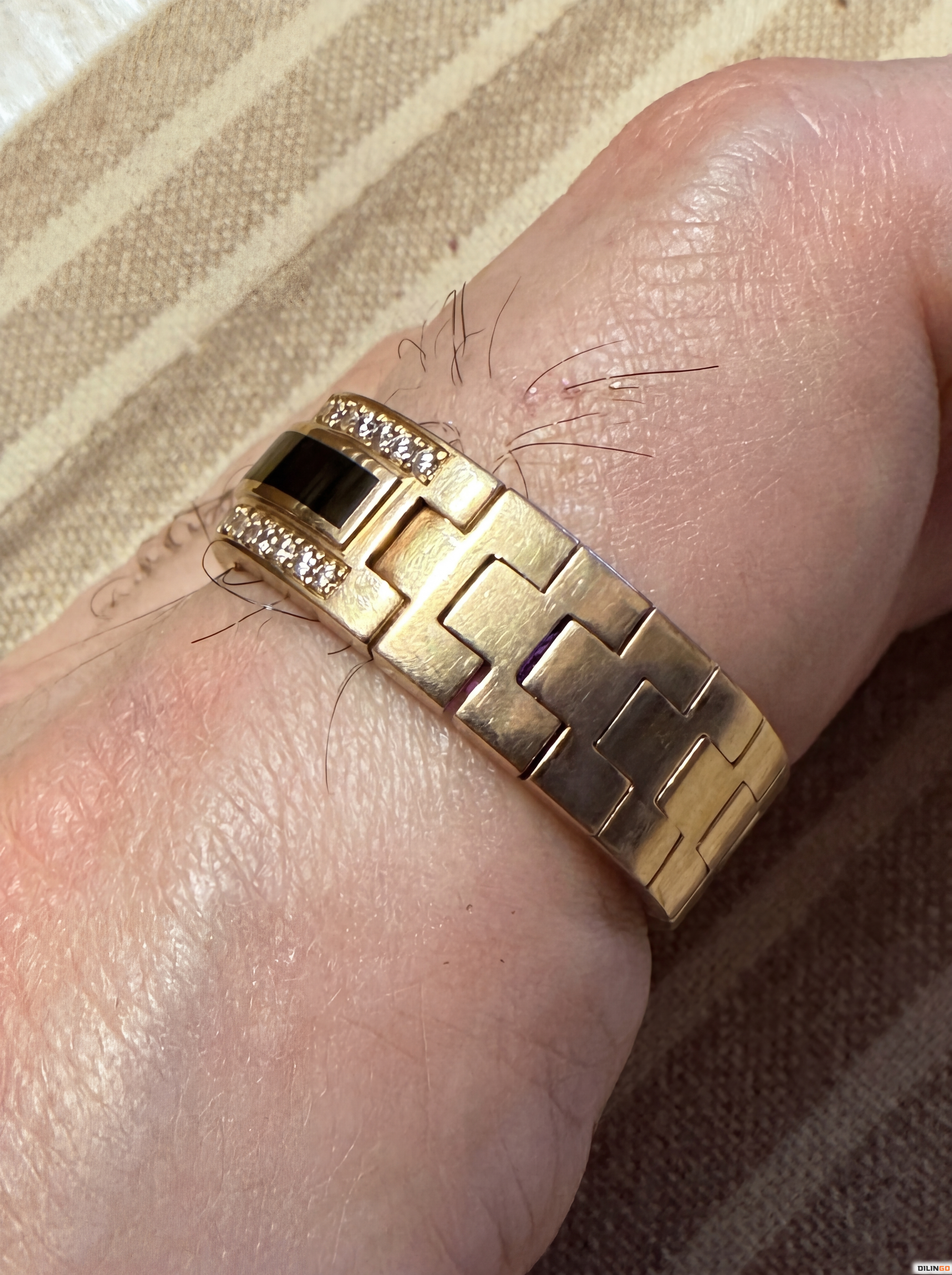 Редкая и нестандартная конструкция: выполнено на гибком золотом ремешке.